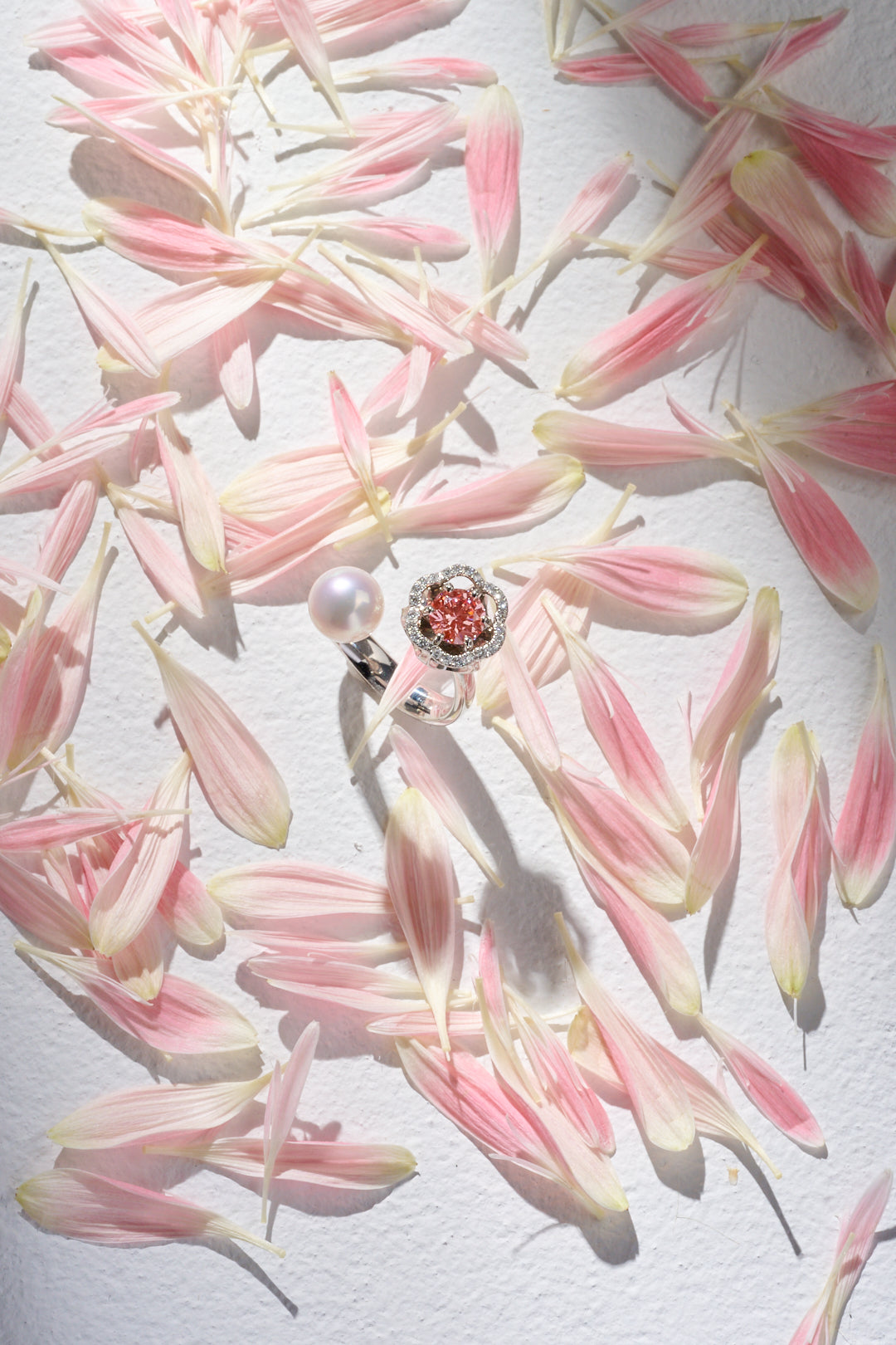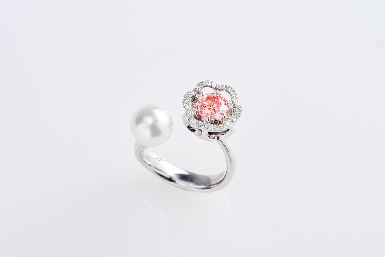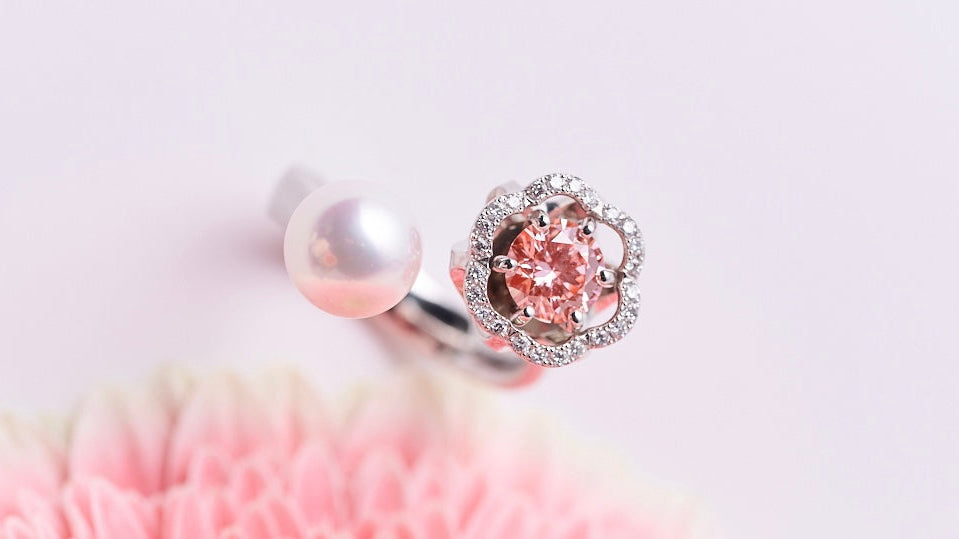 天然ダイヤモンドでは非常に希少なピンクダイヤモンドですが、ラボグロウンダイヤモンドを使用し、ベニクラゲの美しさを表現しました。